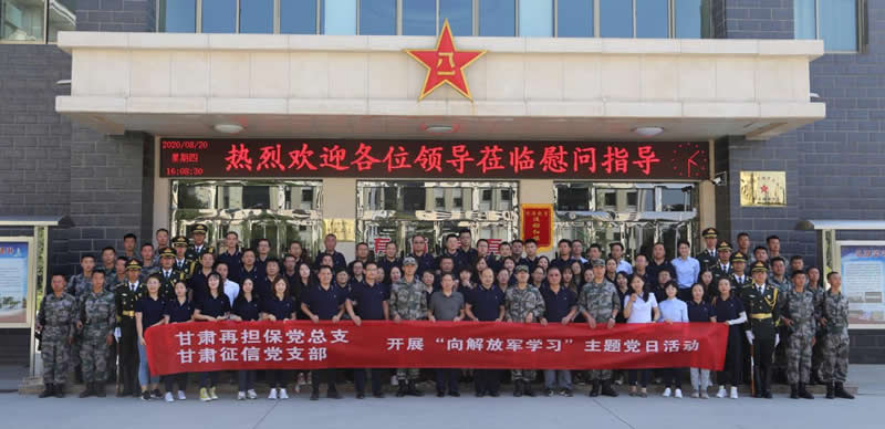 近日,甘肅再擔保黨總支、甘肅征信黨支部前往某部隊警衛勤務營開展主題黨日活動。警衛勤務營全體官兵、集團黨委副書記、副總經理韓鵬,黨委委員、副總經理邊海河、集團黨群工作部、甘肅再擔保和甘肅征信全體員工參加活動。