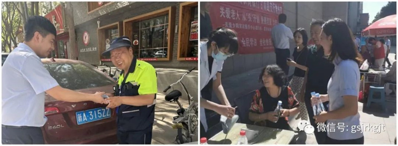 活動(dòng)現(xiàn)場(chǎng),甘肅金控集團(tuán)志愿服務(wù)黨員協(xié)助衛(wèi)生服務(wù)中心、眼科醫(yī)院及社區(qū)工作人員向社區(qū)居民宣傳活動(dòng)、維持秩序,為活動(dòng)工作人員、社區(qū)街道社區(qū)的環(huán)衛(wèi)工人、交警等戶(hù)外工作人員在炎炎夏日送去清涼的礦泉水,向社區(qū)老人開(kāi)展防范電信詐騙宣傳,提醒老人如何防止自己被騙,保護(hù)自己和家人的財(cái)產(chǎn)安全。