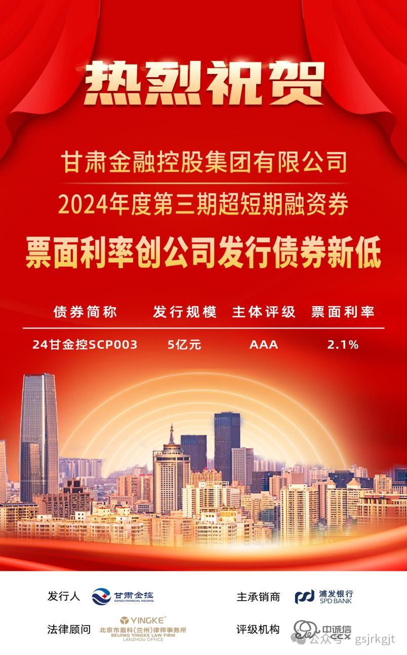 甘肅金控集團成功發(fā)行2024年度第三期超短期融資券