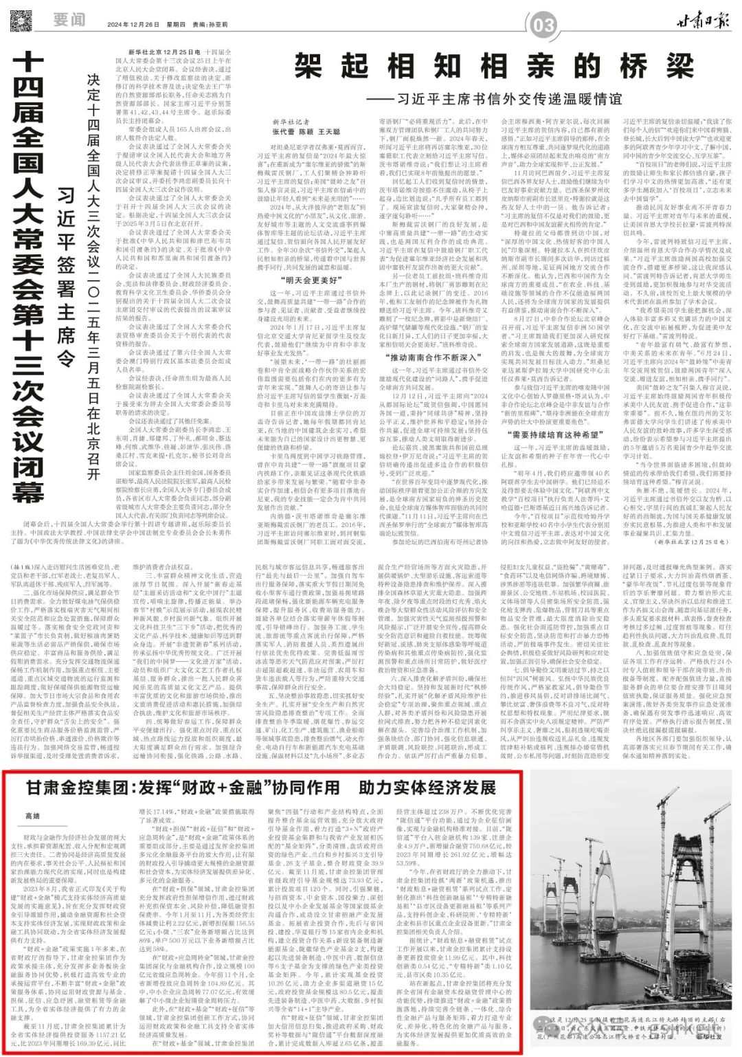 此外,在“財政+基金”“財政+征信”等領域,甘肅金控集團創新工作方式,協同運用財政政策和金融工具支持全省實體經濟高質量發展。