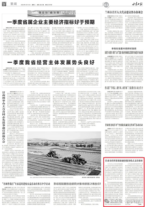 媒體關(guān)注 | 甘肅金控?fù)?dān)保創(chuàng)新融資服務(wù)模式 為創(chuàng)業(yè)“貸”來新機(jī)遇