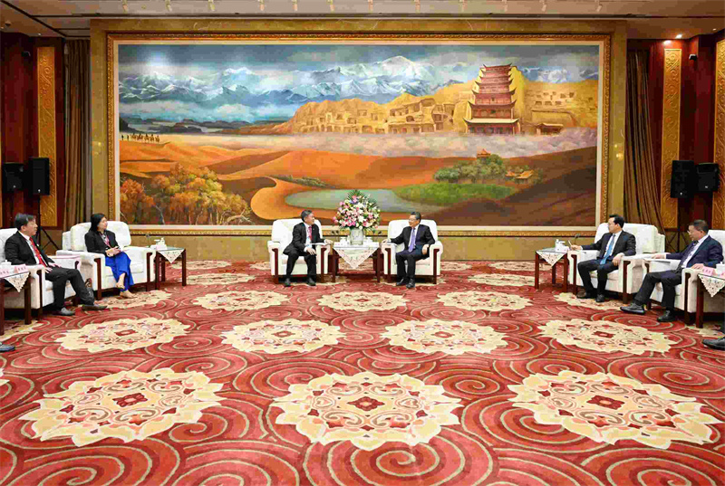 任振鶴對高泉慶一行來甘訪問表示歡迎,并簡要介紹了甘肅經濟社會發展情況。他說,在習近平主席和新方領導人戰略引領下,中新關系保持良好發展勢頭,甘肅與新加坡在科技、教育、文化、醫療衛生等方面的合作交流不斷深化,人員往來更加密切。習近平主席指出,甘肅最大的機遇在于“一帶一路”。隨著高質量共建“一帶一路”、西部陸海新通道建設、新時代西部大開發、黃河流域生態保護和高質量發展等深入實施和《區域全面經濟伙伴關系協定》的全面生效,甘肅歷史文化、資源稟賦、科教人才、工業基礎、地理區位的組合優勢正在加速釋放,也為雙方提供了更大市場、更多需求、更深層次的合作空間。新加坡中華總商會是新加坡歷史最悠久的重要商團,在國際商業舞臺上享有盛譽。希望商會充分發揮橋梁紐帶作用,更多宣傳甘肅、推介甘肅,推動甘肅與新加坡各領域合作再上新臺階。我們將持續營造市場化、法治化、國際化一流營商環境,為企業提供優質高效的服務,讓大家投資在甘肅、滿意在甘肅、收獲在甘肅。