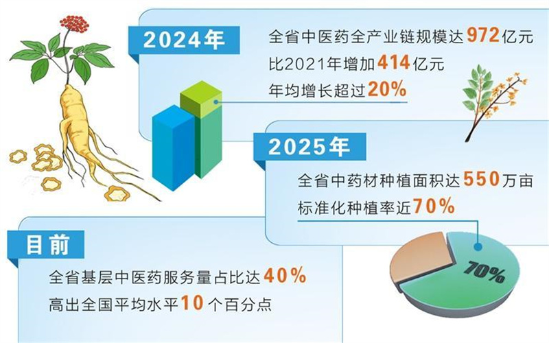 如今,全省已建立起覆蓋省、市、縣、鄉(xiāng)的中醫(yī)藥服務(wù)體系,實現(xiàn)所有綜合醫(yī)院中醫(yī)藥服務(wù)全覆蓋,基層醫(yī)療衛(wèi)生機構(gòu)中醫(yī)館全覆蓋,中醫(yī)適宜技術(shù)推廣使用全覆蓋,基層中醫(yī)藥服務(wù)量占比達40%,高出全國平均水平10個百分點,真正做到讓人民群眾“方便看中醫(yī)、放心吃中藥”。