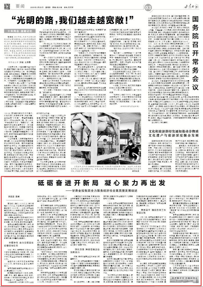 以實干篤定前行,以奮斗開啟未來。甘肅金控集團將堅定信心、頑強拼搏,只爭朝夕、躬身實干,書寫事業高質量發展的新篇章。