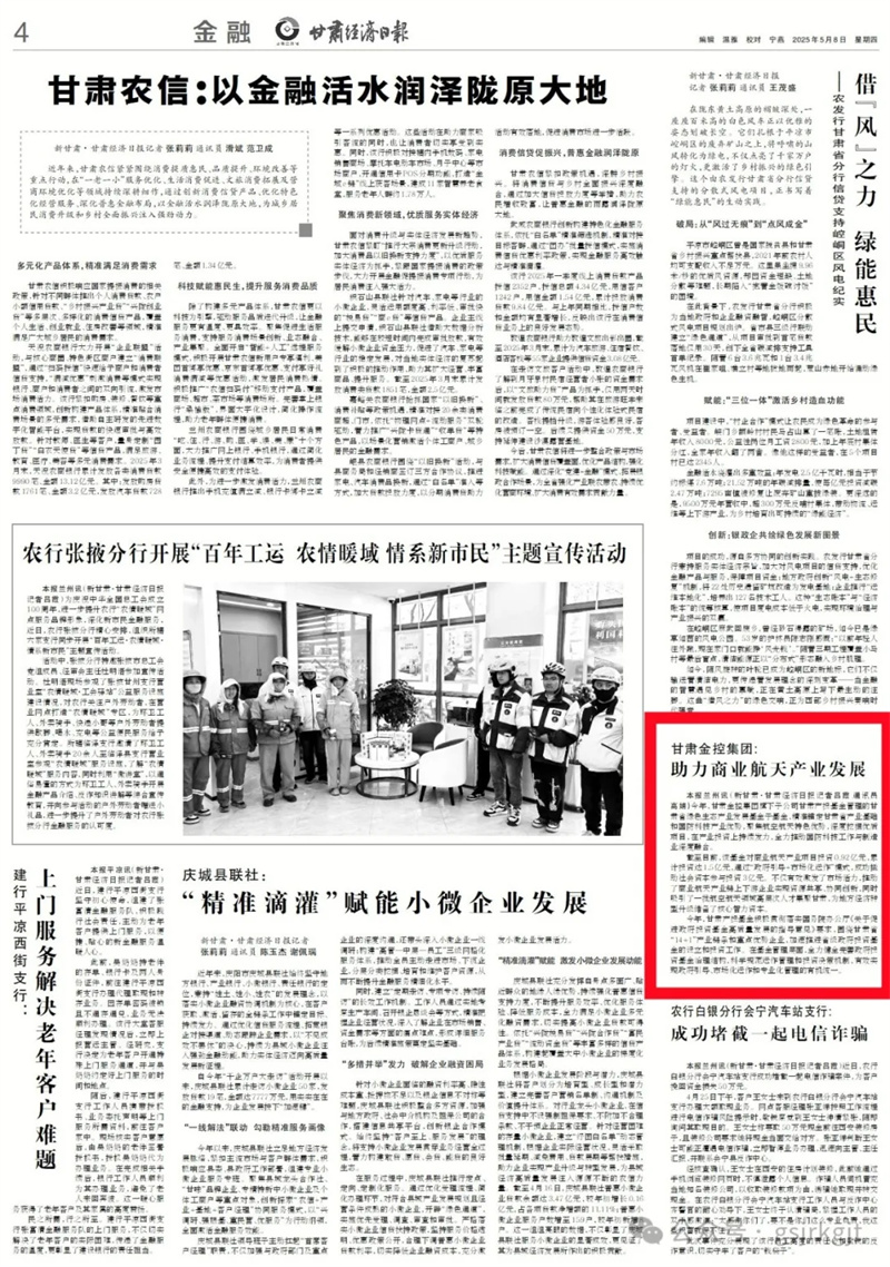 媒體關(guān)注 | 甘肅金控集團(tuán):助力商業(yè)航天產(chǎn)業(yè)發(fā)展