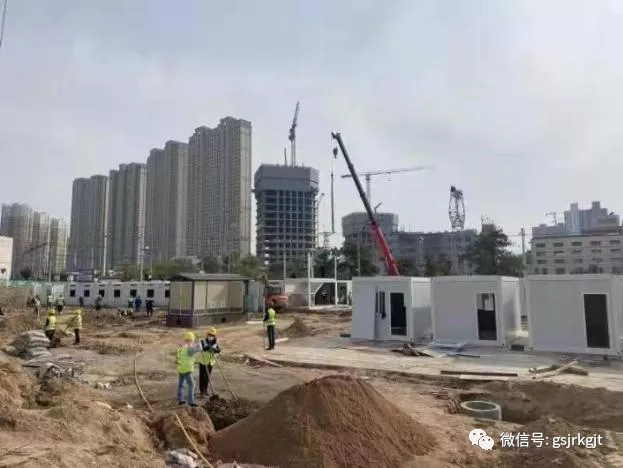 (再貸款公司重點支持服務的甘肅第一建設集團有限責任公司,全力以赴為蘭州市安寧區建設方艙隔離點。)