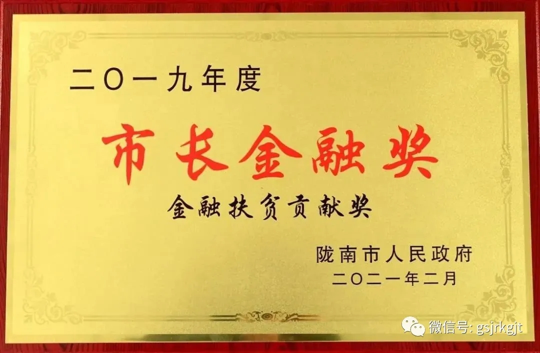 2月7日下午,隴南市副市長薛小勇、市政府金融辦主任郝愛龍、人行隴南中心支行行長白偉東、隴南銀保監分局副局長卯桄帛、市政府金融辦副主任馬小軍一行蒞臨甘肅金控隴南擔保公司調研指導工作,看望慰問員工,并現場頒授“2019年度市長金融獎”。