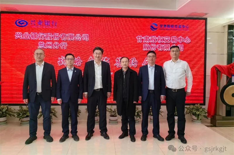 近日,甘肅股權交易中心與興業銀行蘭州分行舉行戰略合作簽約會。興業銀行蘭州分行黨委委員、副行長張華,甘肅股交中心總經理郭曉偉出席會議并致辭,興業銀行蘭州分行投資銀行部副總經理周濤、城關支行行長朱澤、甘肅股交中心掛牌企業甘肅中人通信工程有限公司董事長蹇宗銀出席會議。