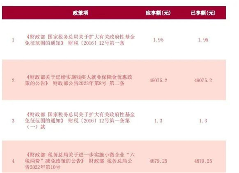 為深入推進(jìn)“三抓三促”行動(dòng),甘肅征信圍繞“公司要發(fā)展,我該謀什么”主要任務(wù),堅(jiān)持高標(biāo)準(zhǔn)、嚴(yán)要求開(kāi)展財(cái)稅工作,全面梳理2023年度稅費(fèi)支持政策,認(rèn)真研讀《財(cái)政部 稅務(wù)總局關(guān)于進(jìn)一步實(shí)施小微企業(yè)“六稅兩費(fèi)”減免政策的公告》《財(cái)政部 國(guó)家稅務(wù)總局關(guān)于擴(kuò)大有關(guān)政府性基金免征范圍的通知》《財(cái)政部稅務(wù)總局關(guān)于明確生活性服務(wù)業(yè)增值稅加計(jì)抵減政策的公告》(2019年第87號(hào) )等相關(guān)政策,支持公司高質(zhì)量發(fā)展。截止2023年12月,公司已享受稅收減免53957.7元。